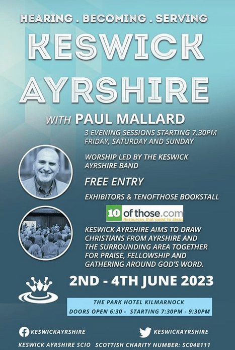 Keswick Ayrshire 2023 took place at the Park Hotel in Kilmarnock from 2nd – 4th June. Paul Mallard was our main speaker. Paul was called to pastoral ministry in 1982 and served as pastor in Chippenham and Worcester. He was part of a pastoral team in Birmingham whilst carrying out an itinerant ministry before becoming pastor of Widcombe Baptist Church in Bath. Paul has recently retired from this role but now serves as FIEC’s Director for the West Midlands and the chair of FIEC’s Theology Team, helping churches and leaders to think through the key theological challenges facing us in 21st Century Britain.